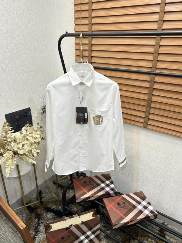Burberr_y Pocket Monogram Embroidered Cuff Signature Patched Imported Partywear Shirth With Og Box & Bag (DN109)