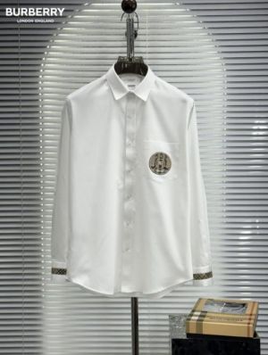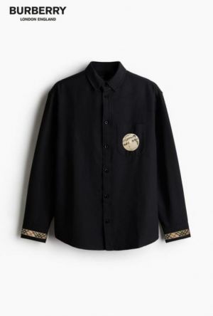Burberr_y Pocket Monogram Embroidered Cuff Signature Patched Imported Partywear Shirth With Og Box & Bag (DN109)